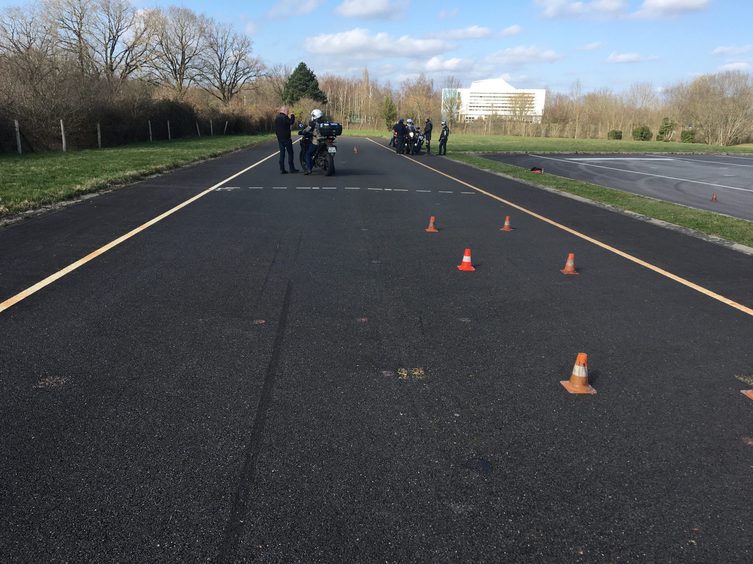 Il y avait également un atelier pour le slalom et réviser ses évitements, et celui pour améliorer ses freinages. A chaque fois, environ 25 minutes par exercice, puis ça tourne ! Et pas de cinéma ici…que du plateau ! Silence, ça tourne !