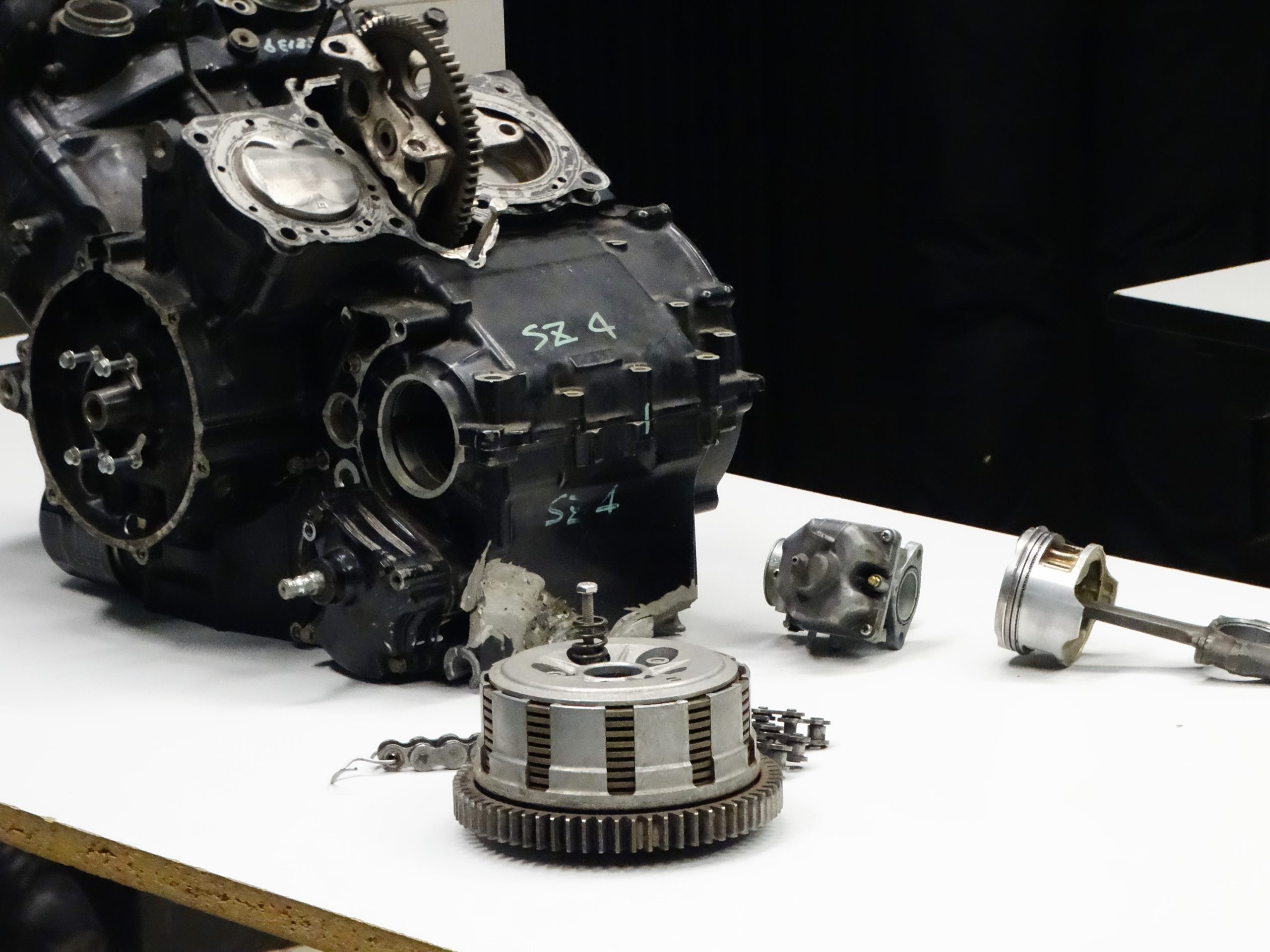 Après avoir divisé la communauté en deux groupes, les apprentis mécaniciens, pour la plupart novices dans le domaine, ont pris place autour de l’étrange bout de métal, anciennement supposé faire vibrer une Honda VFR 750.